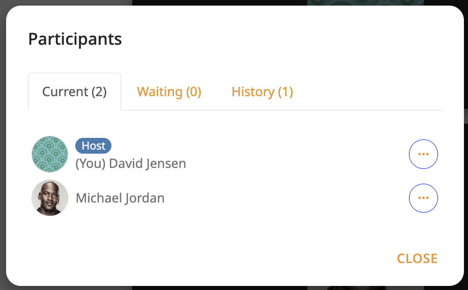 Hosts can view participants currently in that group video, participants waiting to enter the room, and participants that have already joined and left the room.