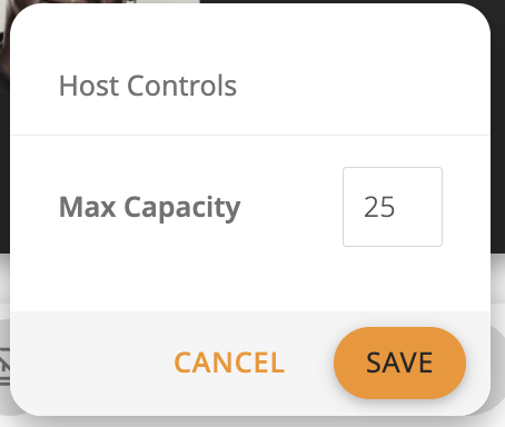 By clicking on the Host Controls button, Hosts will have the ability to increase the participant capacity up to a maximum capacity of 25. Hosts will not be able to decrease this number.