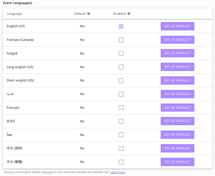 Enable Event Languages